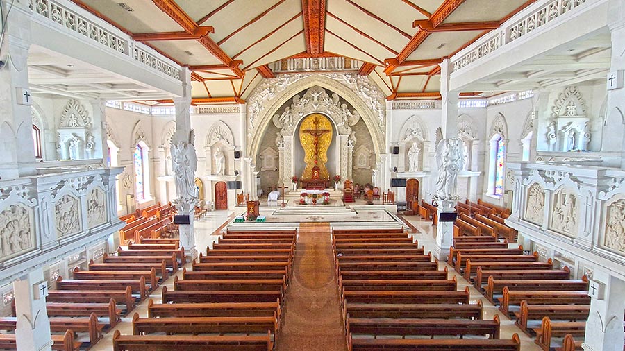 The interior is bright, spacious and serene, featuring colorful stained‑glass windows, wooden details and decorative elements inspired by Balinese design. The combination of Christian symbols with local architectural forms creates a unique atmosphere unlike any other temple in Bali. During major celebrations such as Christmas and Easter, the cathedral fills with worshippers and choral music, offering a deeply moving spiritual experience.