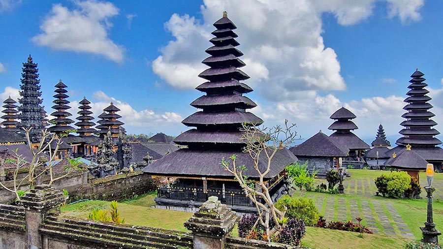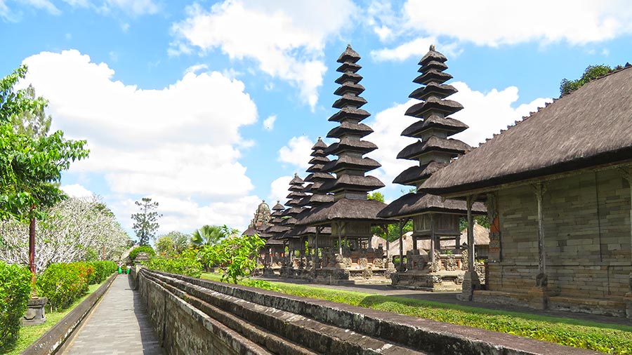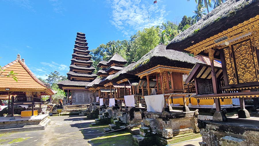 The complex is composed of several courtyards and shrines, including an impressive collection of meru towers, the multi‑tiered structures that represent deities and sacred mountains. Walking along its pathways reveals the symmetry of the layout, the beauty of its carved gates and the peaceful ambiance that fills the entire compound. Although it is less crowded than some of Bali’s more famous temples, its historical and aesthetic value makes it an essential stop on any cultural itinerary.