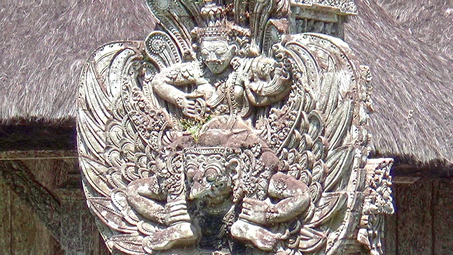 Inside the cave, you’ll find small shrines and statues dedicated to Hindu deities, while outside, the ablution pools with female figures pouring sacred water stand out as one of the site’s most significant features. The surrounding environment—lush tropical vegetation, winding pathways and scattered archaeological remains—creates a tranquil and mysterious atmosphere that invites slow exploration. It’s an ideal place for travelers seeking a more historical and less tourist‑oriented experience.