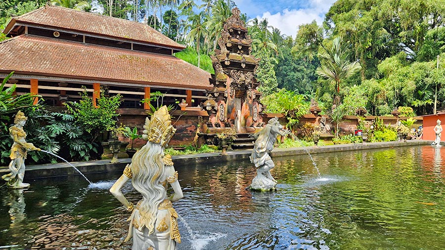 The temple was built around a natural spring in the 10th century and is famous for its sacred waters, used by the Balinese for purification rituals. It is one of the most sacred temples on the island and was declared a UNESCO World Heritage Site in 2012. The structure features traditional Balinese gates, known as Candi Bentar, which mark the entrance to sacred spaces. The spring water is channeled into several stone fountains where visitors perform the melukat ritual or spiritual purification. Additionally, the water fills ponds with fish decorated with traditional stone statues that shoot streams of water.